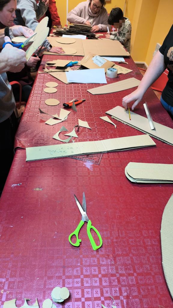 Quedamos venres e sábados, en xornadas de duro traballo, para que todo estivese listo: preparar a carroza, rematar disfraces, montar detalles e facer que cada elemento brillase no desfile.
