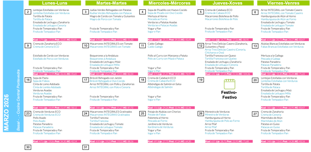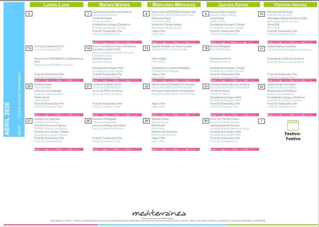 O comedor non é un servizo xestionado pola ANPA pero, para a información das familias, compartiremos aquí os menús mensuais.